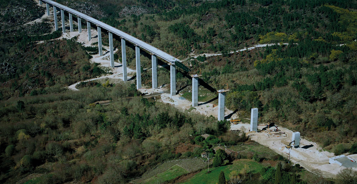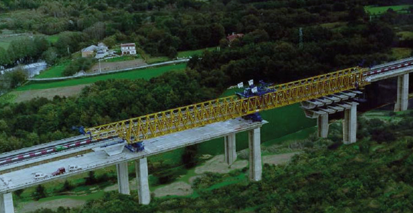 These viaducts are located on the Rías Bajas highway (Galicia), on the stretch San Ciprián de Viñas - Alto de Allariz. The sections are erected isostatically to bridge to construct the 45 meters spans with 16prefabricated, pre-stressed segments.