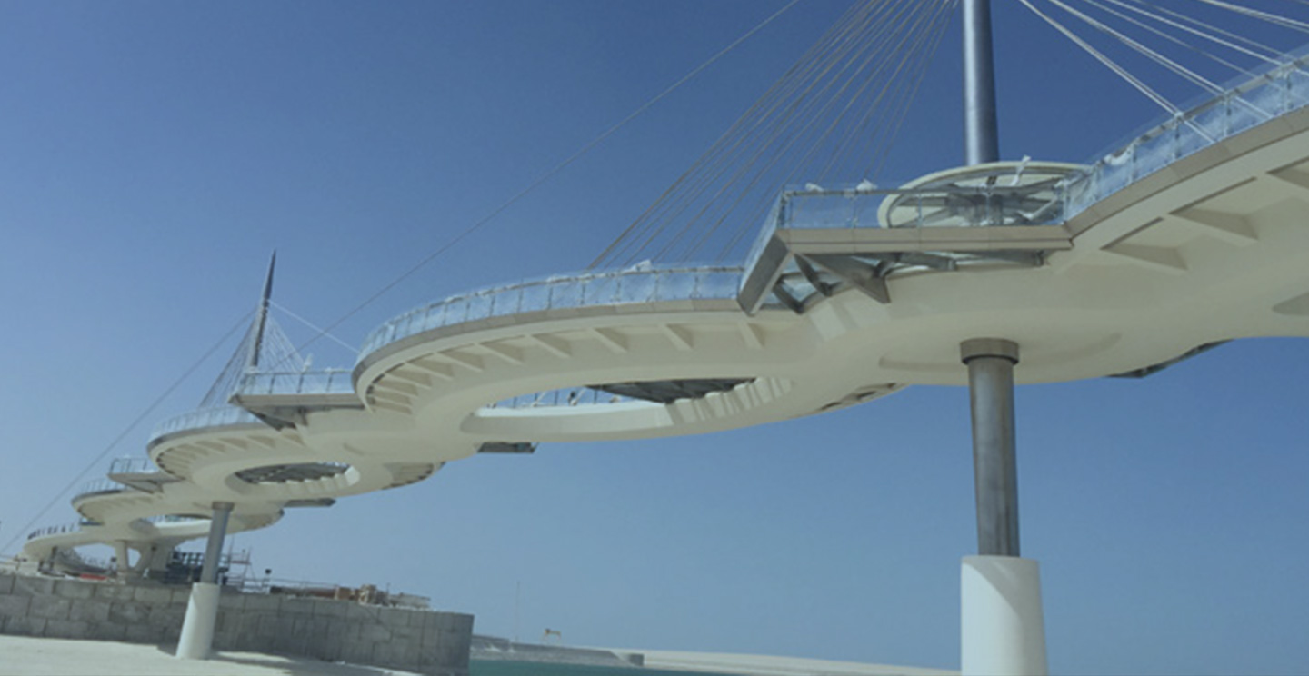 El concepto que encierra este planteamiento arquitectónico, es crear un espacio singular de recreo sobre los canales artificiales que separan las islas de artificial Qetaifan. Las dos estructuras son gemelas, con idéntica tipología (tablero atirantado de tres vanos de 30 + 60 + 30 metros), variando únicamente entre los dos puentes las dimensiones de las rampas de acceso al tablero, a su vez simétricas en cada estructura.